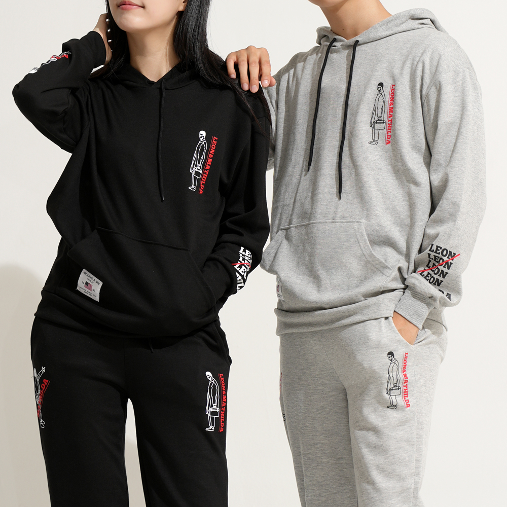 레옹&마틸다 사계절 특양면 후드티셔츠 남여공용 빅사이즈 트레이닝복 일상복~3XL