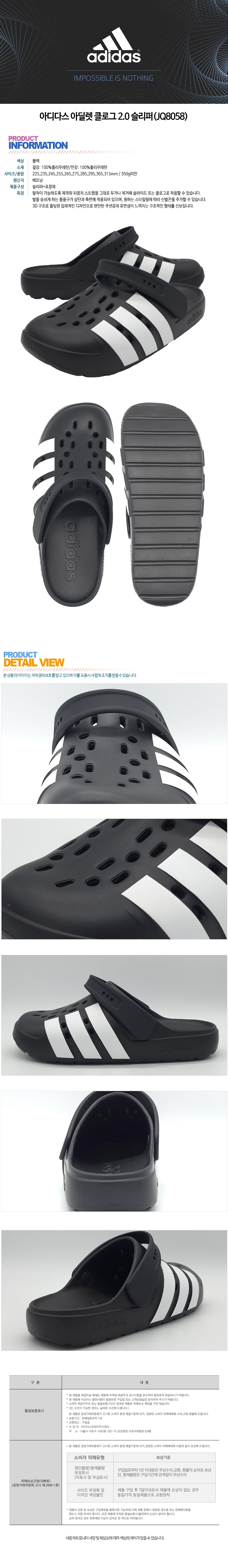 아디다스 아딜렛 클로그 2.0 슬리퍼(JQ8058)