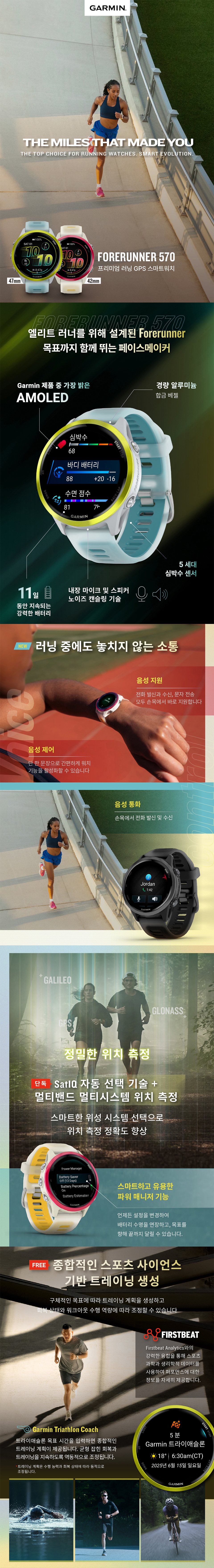 [가민] 포러너 570 42mm 러닝 GPS 스마트 워치 블랙
