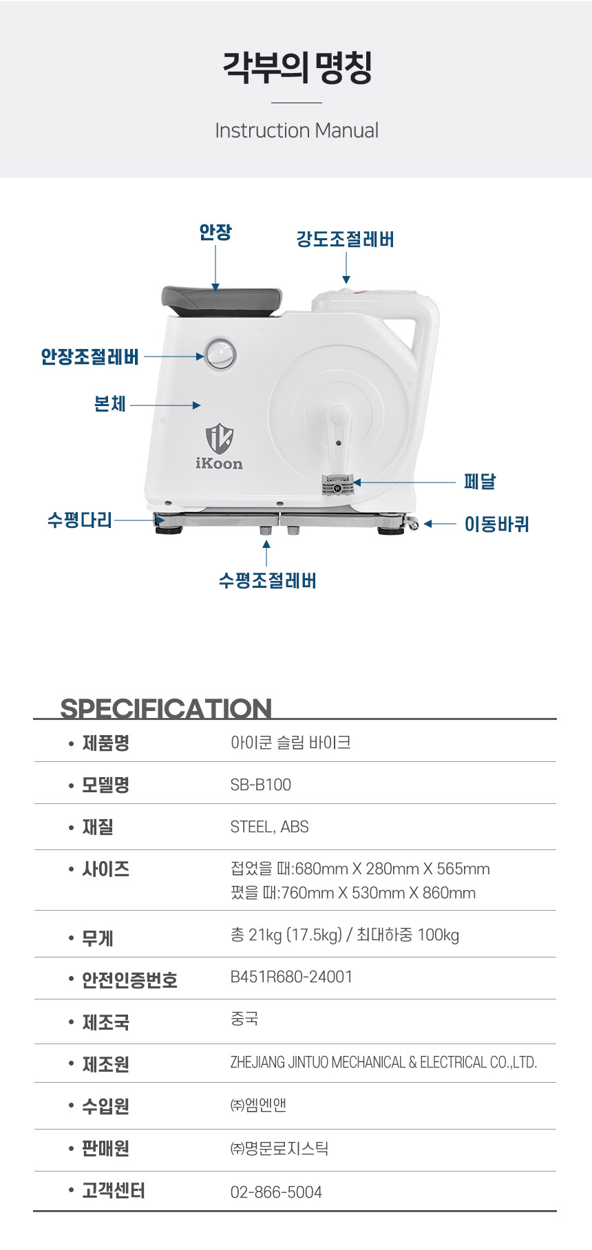 [아이쿤] 스퀴어 슬림 바이크 SB-B100 + 전용안장커버