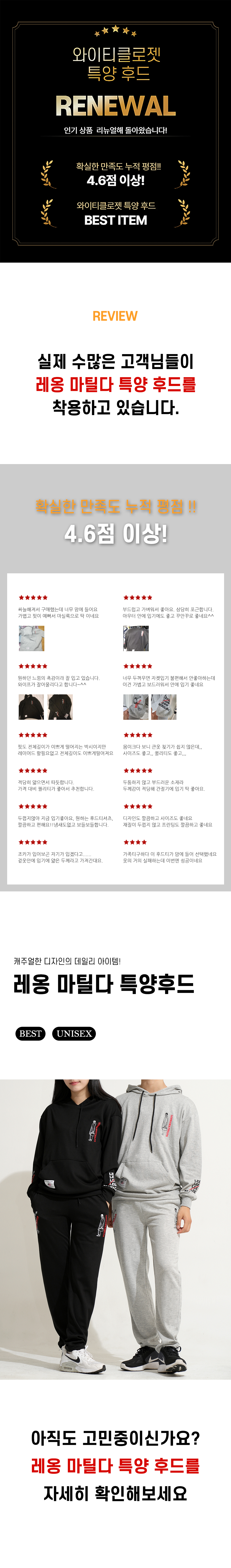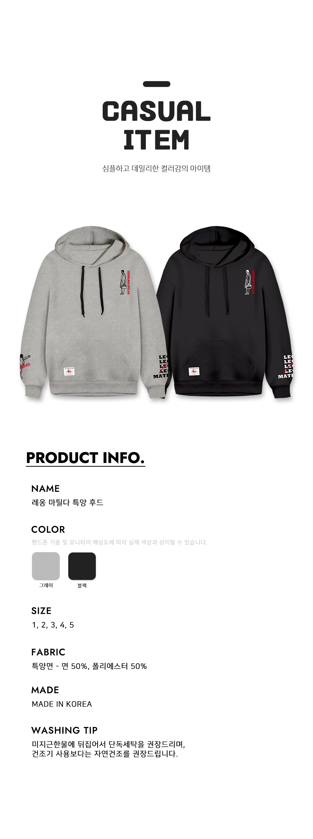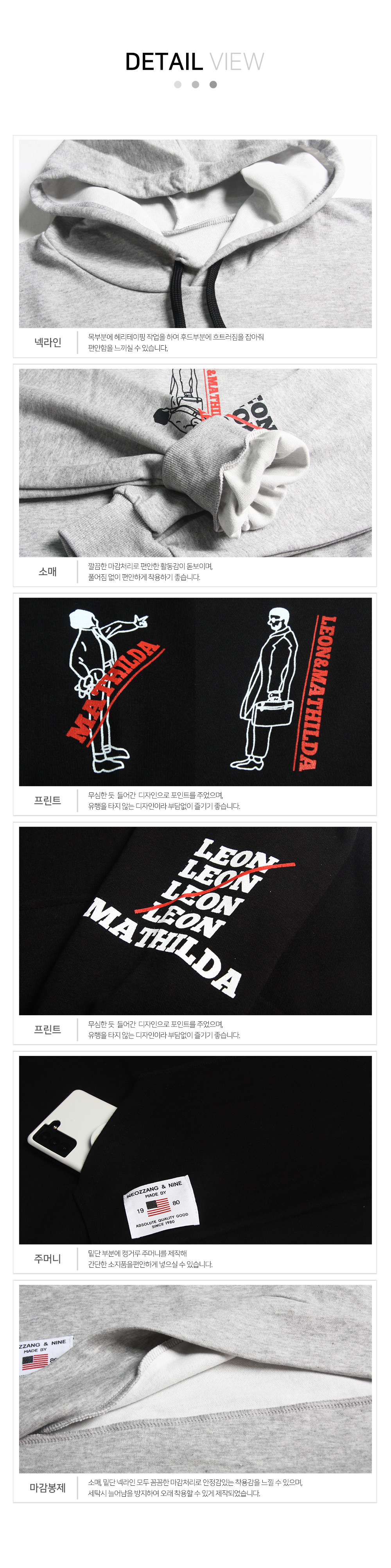 레옹&마틸다 사계절 특양면 후드티셔츠 남여공용 빅사이즈 트레이닝복 일상복~3XL