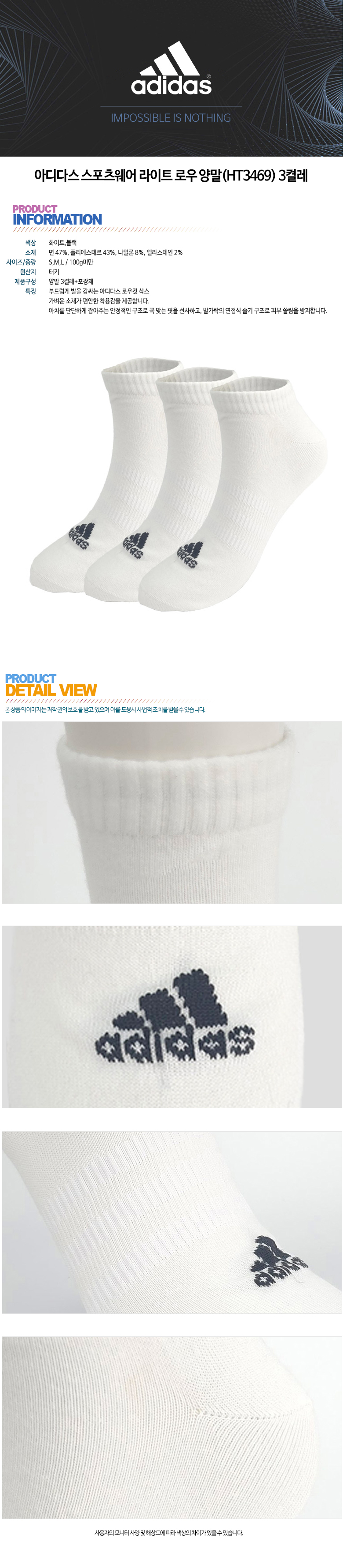 아디다스 스포츠웨어 라이트 로우 양말(HT3469) 3켤레