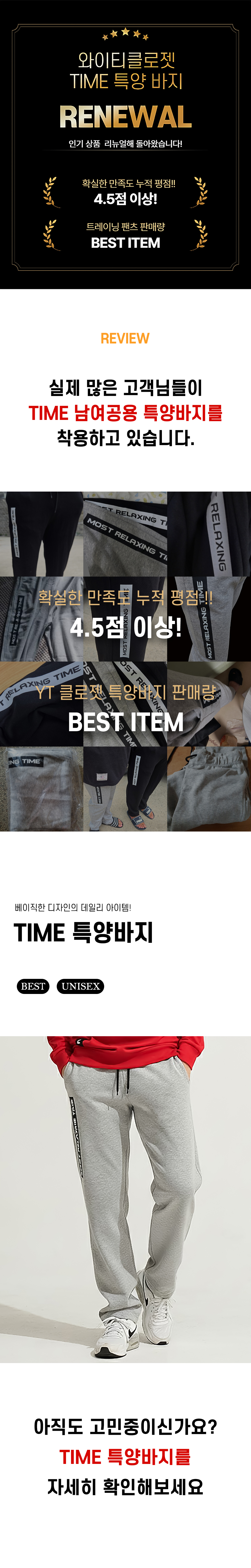 1+1(2PACK) 사계절 특양 긴바지 TIME 남여공용 트레이닝바지 홈웨어 일상복~3XL